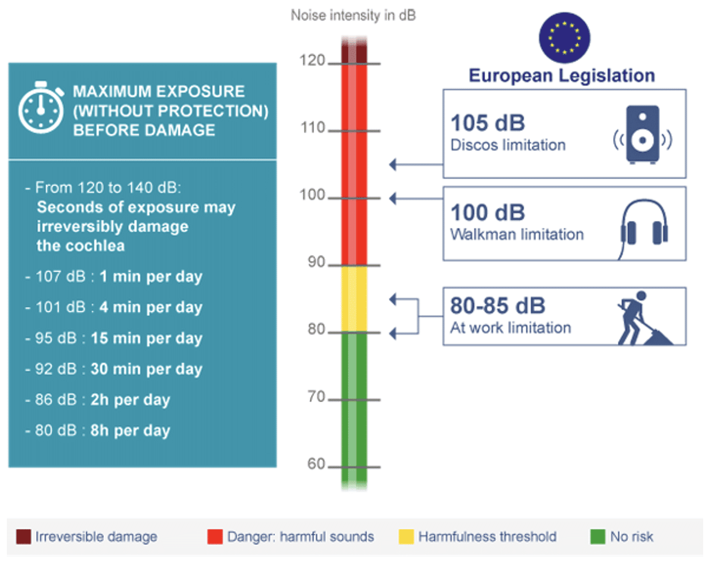 The EU states that anything over 80 dB for extended periods can cause permanent hearing loss, so airline pilots are sat right on that boundary every working day.