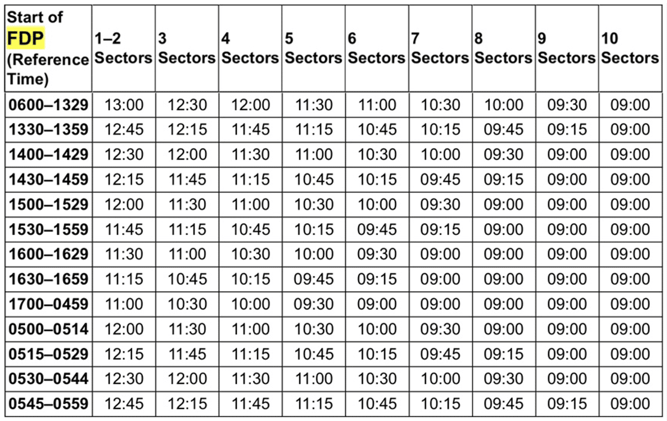 The daily limit varies depending on your start time & how many flights you do. Iโve included a table for reference. Note that these can be โextendedโ by the airline to a less restrictive table a set number of times per month.