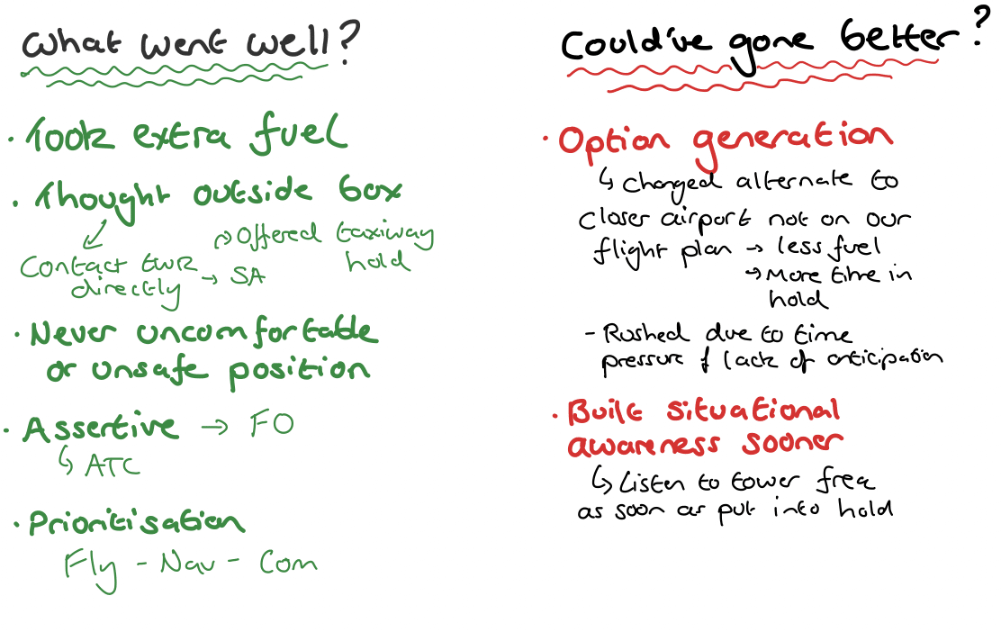Overall it was a pretty stressful 10 minutes. We de-briefed on the ground and again on the flight back. Everything has a silver lining and for me, it would be the fact that we can draw some learning points from this.