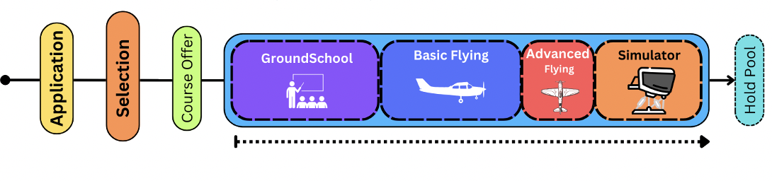 After choosing your desired flight school and training course, the next step is to apply. After the initial application, you’ll have to go through a multi-stage selection process to secure your place on a course.