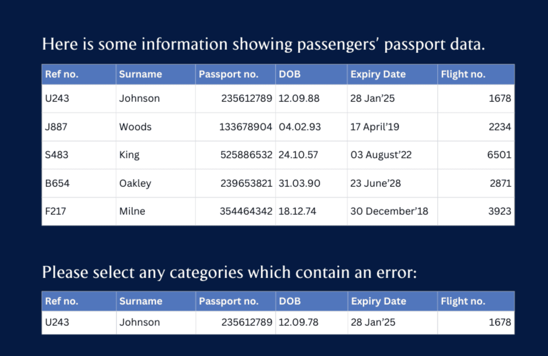 This will test how you work with data and patterns, your ability to spot errors, and your attention to detail. Below is an example from their preparation area.