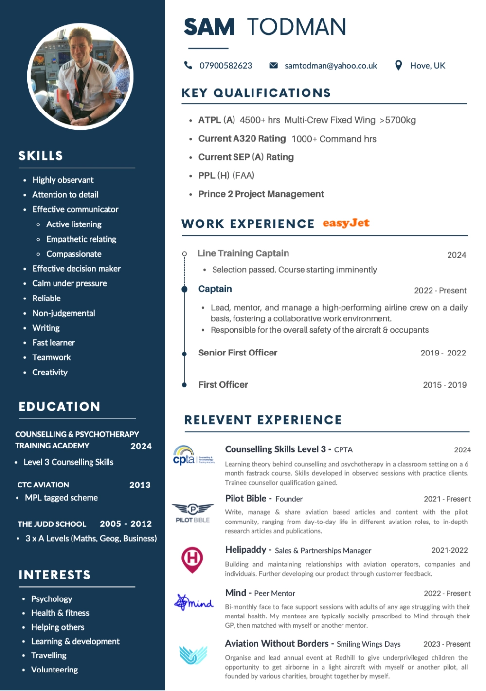 I’ve attached my CV below for reference. I’m not saying this is the perfect CV, but it hopefully gives you a rough idea of something to aim for. Obviously mine has lots of flying experience on it, yours won’t, but they assessment team also won’t expect it. Just make sure the ‘work experience’ section is relevant to the behaviours and competencies for the role.